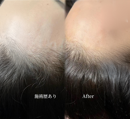 生え際の薄い所に密度がでる。